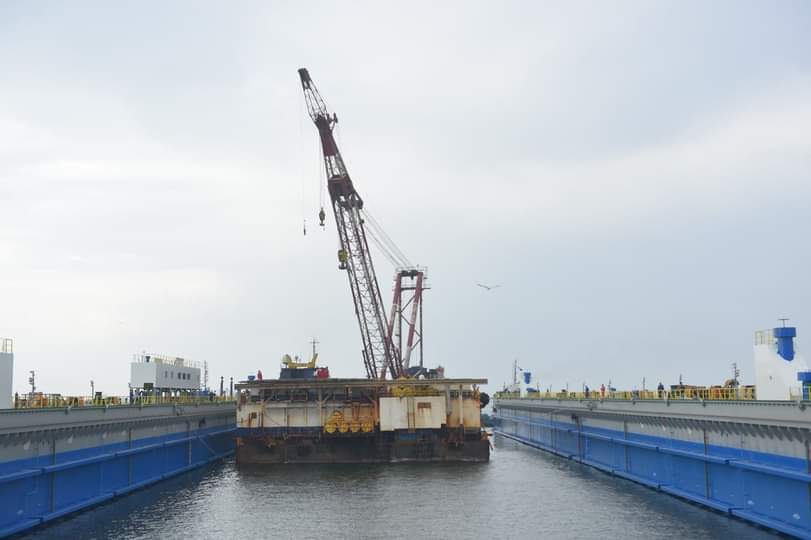 الحوض العائم"فخر القناة" يستقبل وحدة الخدمات البترولية PMS 12 كأول وحدة بحرية على الحوض
