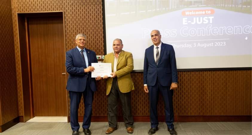 عقد الدكتور عمرو عدلى رئيس الجامعة المصرية اليابانية للعلوم والتكنولوجيا امس مؤتمرا صحفيا بمقر الجامعة بمدينة برج العرب الجديدة بالاسكندربة للاعلان عن استعدادات الجامعة للعام الدراسى الجديد وشروط قبول طلاب الثانوية العامة والشهادات المناظرة لها بكليات الجامعة