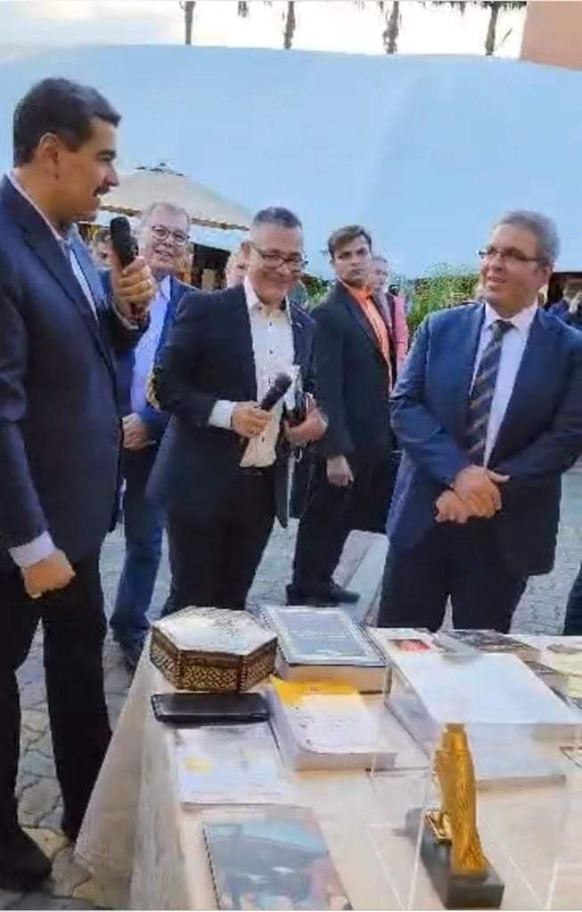قام رئيس جمهورية فنزويلا "نيكولاس مادورو" بافتتاح جناح مصر في الدورة الحالية لمعرض فنزويلا الدولي للكتاب 2023، حيث تفقد الرئيس ترافقه السيدة الأولى ووزير الثقافة الفنزويلي، المعروضات المصرية من كتب مترجمة ومستنسخات فرعونية، مستذكرا زيارته إلى مصر العام الماضي، ومشيدا بكنوز الحضارة المصرية.