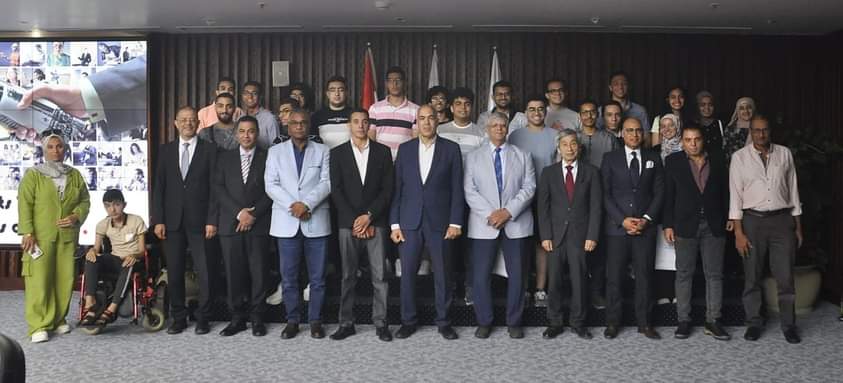 وفدا من الطلاب أوائل الجمهورية بالثانوية العامة لعام ٢٠٢٣ بحضور الدكتور شوجي هاشيموتو نائب رئيس الجامعة للشئون الاقليمية والدولية والدكتور سامح ندا نائب رئيس الجامعة للشئون الاكاديمية والتعليم والدكتور عمرو الطويل عميد كلية هندسة التصميم الابداعى والدكتور أحمد يحيى عبيد عميد كلية ادارة الأعمال الدولية والانسانيات