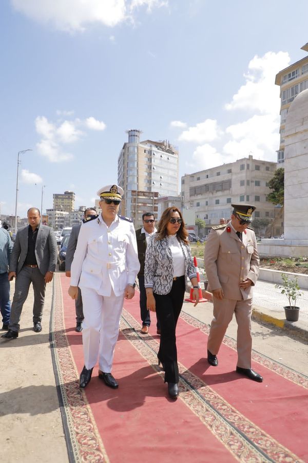 الدكتورة منال عوض محافظ دمياط، يرافقها اللواء حسام الباز مساعد وزير الداخلية - مدير أمن دمياط والعقيد دكتور سعيد عبد الخالق المستشار العسكري للمحافظة ، إكليل الزهور على النصب التذكارى للشهداء بمدينة دمياط وذلك احتفالاً بالذكرى ال٤٩ لانتصارات السادس من أكتوبر المجيدة .