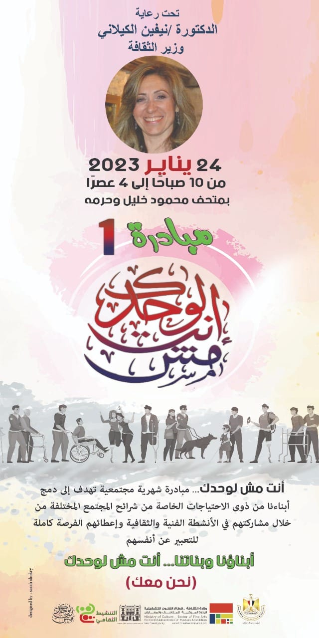تطلق وزارة الثقافة من خلال قطاع الفنون التشكيلية برئاسة الدكتور وليد قانوش، المبادرة المجتمعية " إنت مش لوحدك" لدمج الأطفال ذوي الاحتياجات الخاصة وأطفال مستشفى 57375، وذلك في العاشرة صباح الثلاثاء 24 يناير الجاري، بمتحف محمد محمود خليل وحرمه في الدقي.