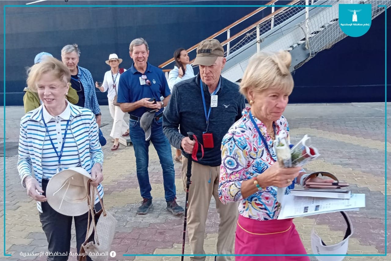 وكان في استقبال السائحين فريق الهيئة الإقليمية لتنشيط السياحة برئاسة شيرين مصطفى مدير الهيئة ، والأستاذ حسام غريب مدير المراسم بميناء الإسكندرية، حيث تم استقبالهم بأعلام مصر والنشرات والدلائل السياحية للمعالم السياحية والأثرية، كما قدموا الهدايا الرمزية لطاقم السفينة وسط حالة من السعادة من جانب السائحين اللذين عبروا عن سعادتهم بحفاوة الاستقبال.