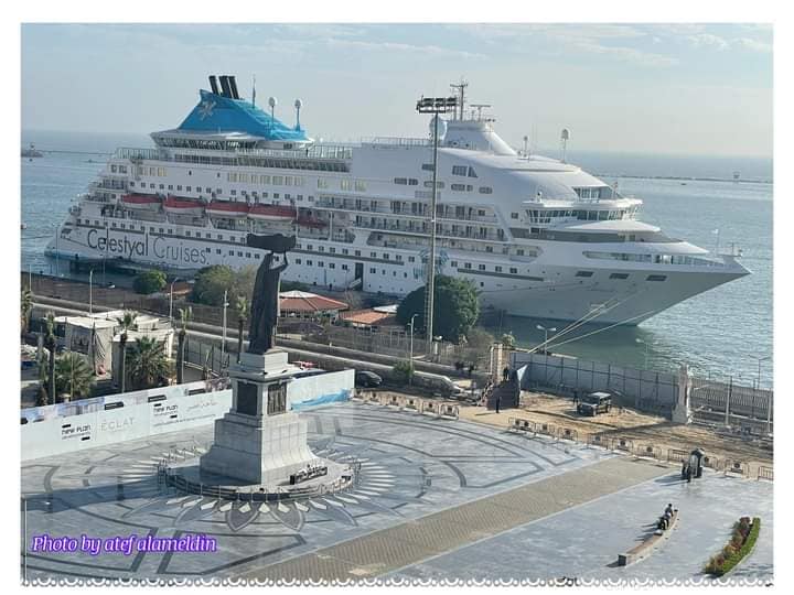 كما استقبل الميناء أيضا" السفينة CELESTYAL CRYSTAL "كريستال السماوية"وجنسيتها مالطا، وعلى متنها 694 راكب من جنسيات و413 بحرى وطاقم بحاره، وهى بطول 134 متر ،وعرضها25 متر،وغاطسها 6.1 متر كما تبلغ حمولتها الكلية25611 طن ، قادمة من ميناء بيريوس باليونان ،ومن المقرر ان تغادر السفينة الميناء فى نفس اليوم عقب عودة 645 سائح من رحلتهم الى القاهرة بعد زيارة المناطق الأثرية والمتاحف المختلفة، فيما قام بعض أفراد الطاقم والركاب بجولات حرة غير منتظمة داخل محافظة بورسعيد.