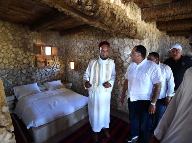 تفقد الدكتور مصطفى مدبولي، رئيس مجلس الوزراء، أحد المنتجعات السياحية البيئية الشهيرة بواحة سيوة، فى إطار دعم قطاع السياحة ومقوماتها بالواحة.