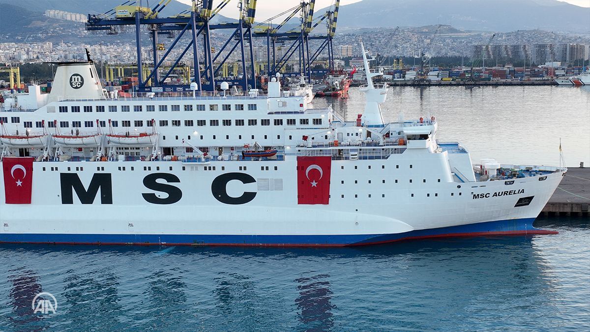 ووصلت سفينة أوريليا شواطئ محافظة هاتاي التركية، قادمة من مدينة نابولي الإيطالية، بهدف إيصال المساعدات لضحايا الزلازل.