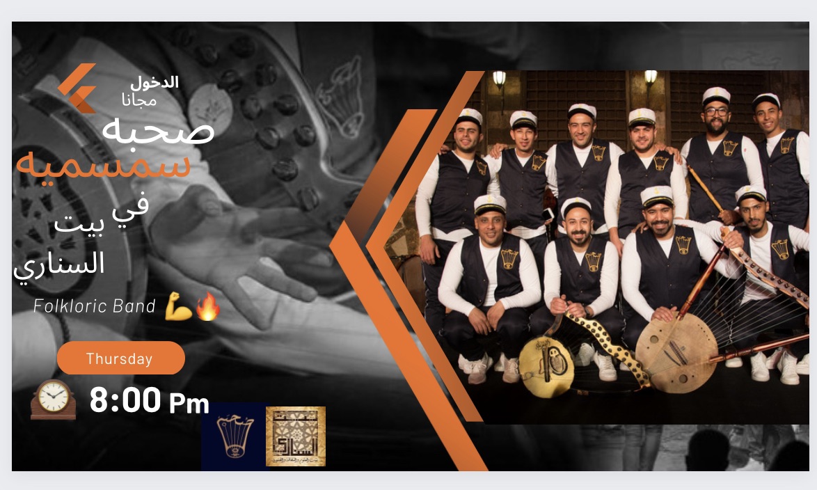 ينظم " بيت السنارى " بالسيدة زينب حفلة غنائية وموسيقية مميزة لفرقة "صحبه سمسميه"، الخميس 18 مايو في تمام الساعة 8:00 مساءً.