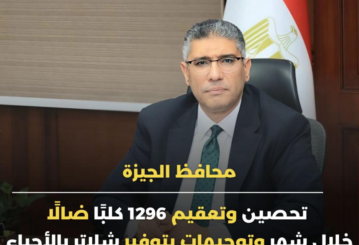 محافظ الجيزة: تحصين وتعقيم 1296 كلبًا حراًخلال شهر لمواجهة الظاهرة