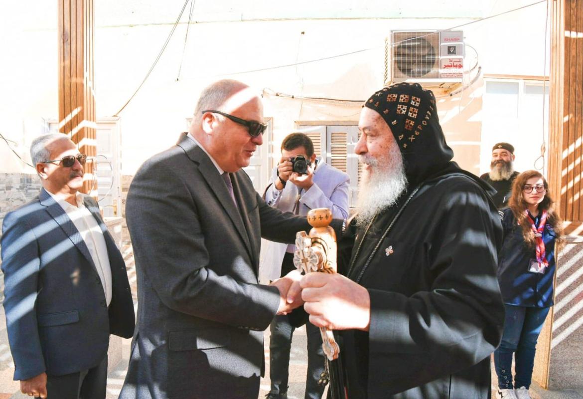 زار اللواء أشرف الداودي محافظ قنا، دير الشهيد مارجرجس بحاجر قرية المحروسة التابعة لمركز قنا لتقديم التهنئة لنيافة ال