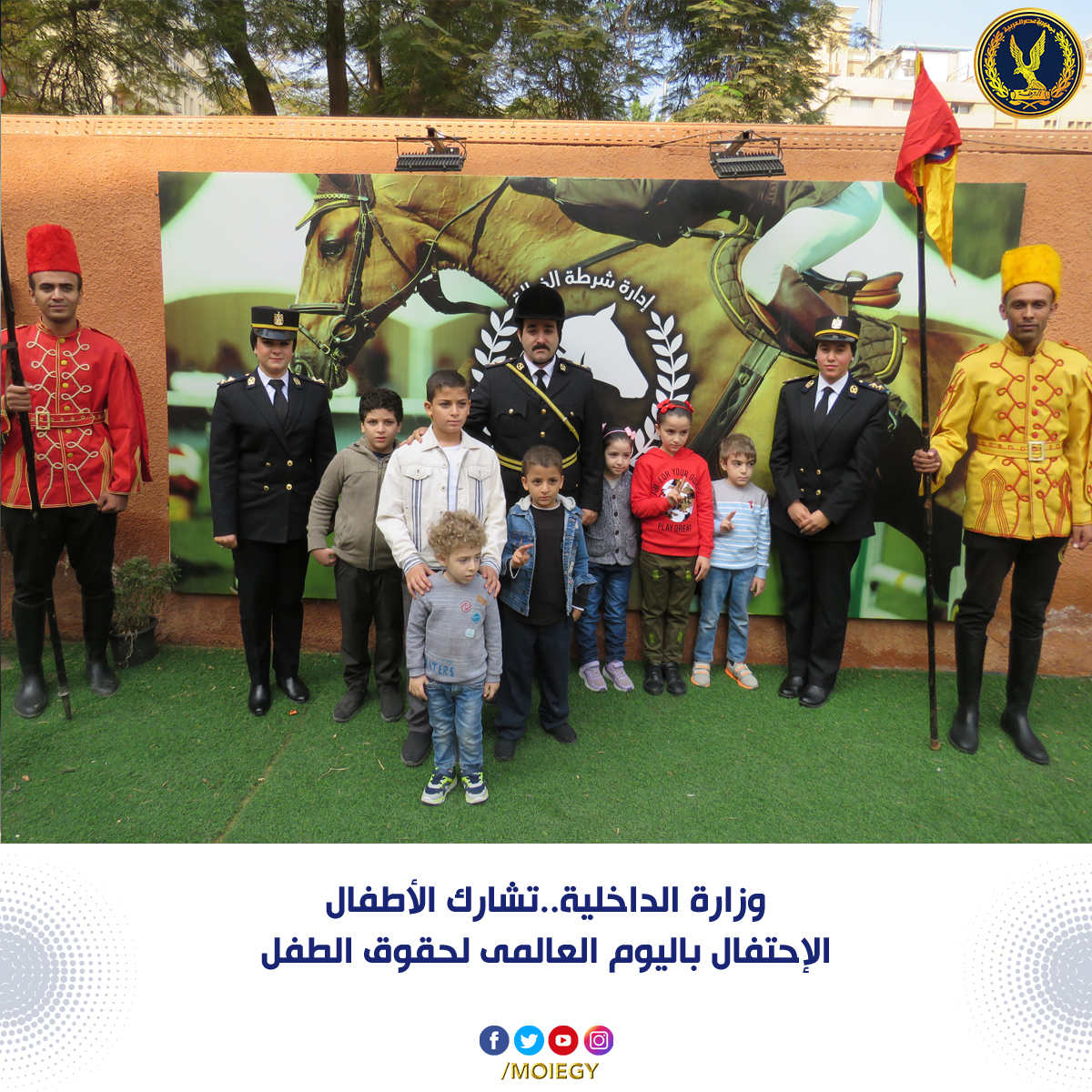 قام قطاع حقوق الإنسان بوزارة الداخلية بمناسبة الإحتفال باليوم العالمى لحقوق الطفل 20 نوفمبر بالتنسيق مع مديريات الأمن على مستوى الجمهورية بتنظيم زيارات إلى عدد من (مدارس الأطفال "أصحاء – ذوى إحتياجات خاصة" – دور رعاية الأطفال الأيتام "أصحاء – ذوى إحتياجات خاصة" – مستشفيات الأطفال) ، وإيفاد قوافل طبية بالتنسيق مع قطاع الخدمات الطبية لتوقيع الكشف الطبى عليهم وصرف الأدوية لهم بالمجان ، وكذا تنظيم زيارات لعدد من المنشآت الشرطية لمشاركة الأطفال الإحتفال باليوم العالمى لحقوق الطفل.