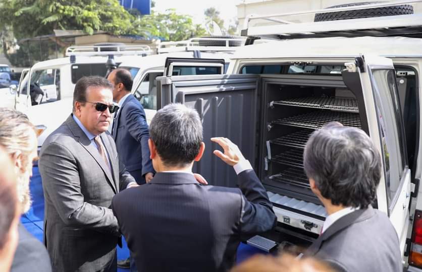 شهد الدكتور خالد عبد الغفار، وزير الصحة والسكان، اليوم الخميس، مراسم تسليم سيارات نقل اللقاحات المبردة الحديثة (RVTV) والمقدمة من حكومة اليابان الصديقة بالتعاون مع منظمة الأمم المتحدة للطفولة (اليونيسف)، بحضور السيد أوكا هيروشي السفير الياباني لدى جمهورية مصر العربية والسيد جيرمي هوبكنز ممثل منظمة الأمم المتحدة للطفولة في مصر (يونيسيف)، وذلك بمقر أكاديمية الأميرة فاطمة للتعليم الطبي المهني بالعباسية.