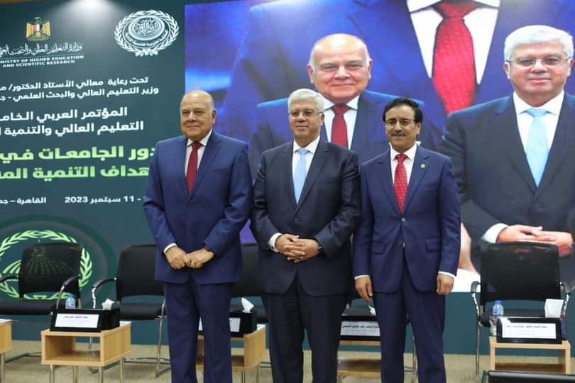 وفى كلمته، أكد د. عاشور أن التنمية المستدامة تمثل موضوعًا حيويًا وهامًا لمستقبل الوطن العربى، خاصة فى ظل التحديات المتعددة التى تواجه العالم اليوم، لافتًا إلى أن الجامعات هى المكان الأفضل لتحقيق تكامل أبعاد التنمية المستدامة الاقتصادية والاجتماعية، والبيئية داخل إطار شامل يحقق الأهداف التى وضعتها الأمم المتحدة، منوهًا بدور الجامعات ومؤسسات البحث العلمى فى تزويد الشباب بالمعرفة والمهارات اللازمة لمواجهة التحديات المعقدة المحيطة بنا، وكذا تأثيرها الممتد لتوجيه الابتكار والمساهمة الفعالة فى تشكيل السياسات وتوجيه المجتمعات نحو التنمية المستدامة.