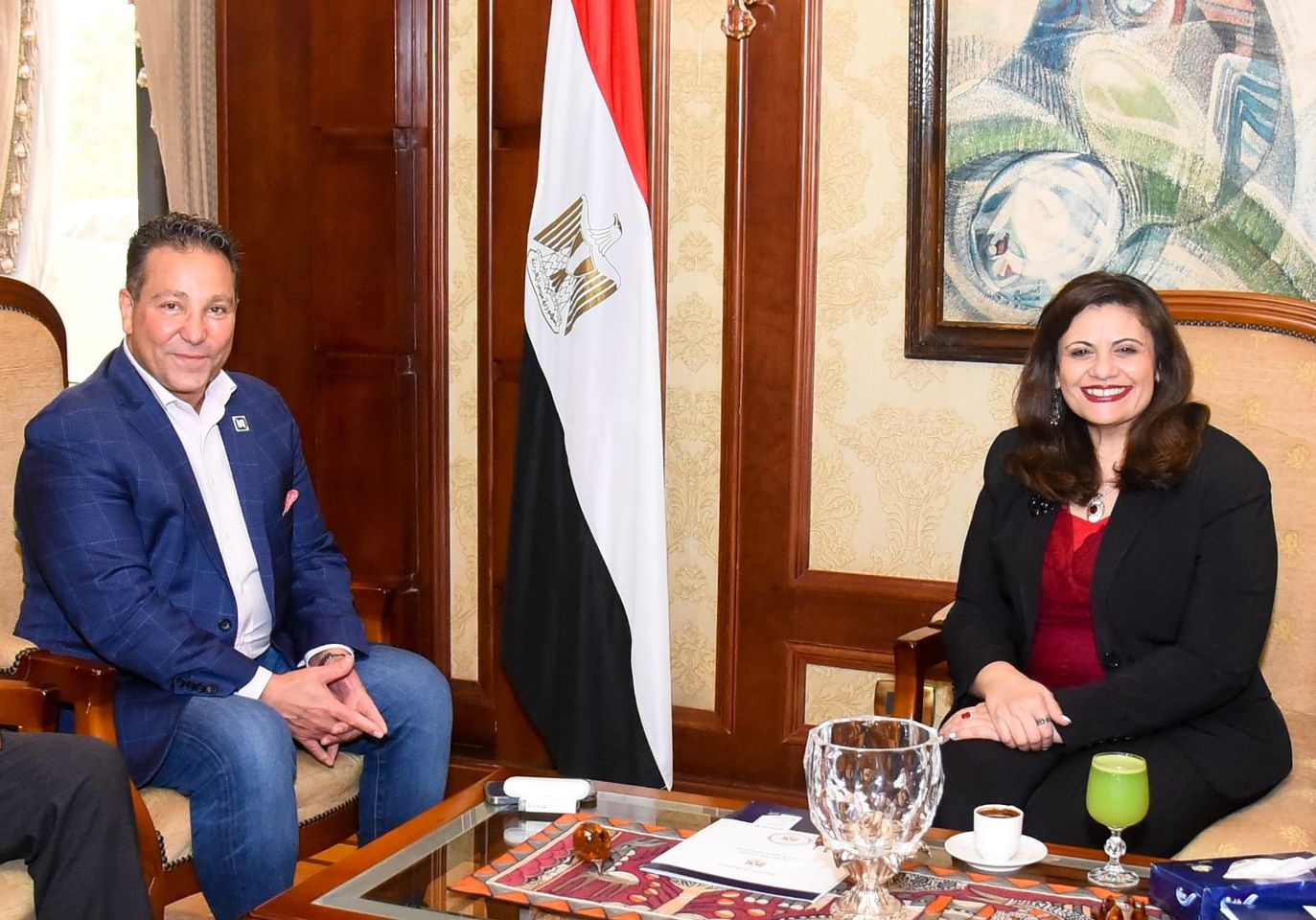 استقبلت السفيرة سها جندي وزيرة الدولة للهجرة وشئون المصريين بالخارج، المهندس تامر هدايت، رئيس مجلس إدارة شركة نت سينك الأمريكية Netsync Network Solutions وأحد أبرز خبراء سلسلة مؤتمرات "مصر تستطيع"، وذلك لبحث التعاون في ملف استثمارات المصريين بالخارج داخل وطنهم، وذلك بحضور الدكتور صابر سليمان مساعد وزيرة الهجرة لشئون التطوير المؤسسي، ووسيم زكي المستشار المالي لوزارة الهجرة.